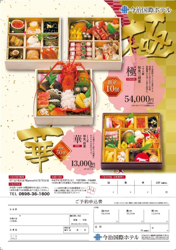 今治国際ホテルがお届けする洗練された和のおせち料理。