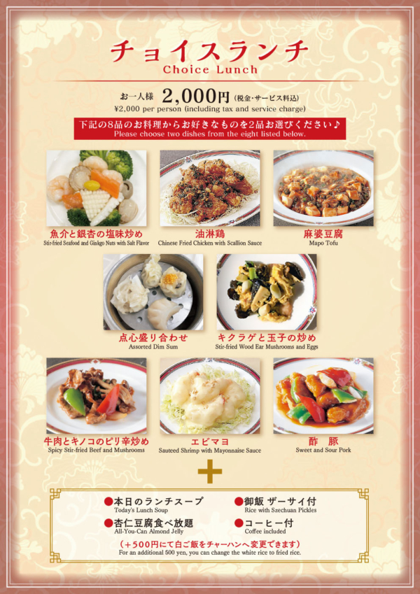 2,000円(税金・サービス料込) | 1名様から承ります | 2025/08/01~2025/08/31 |